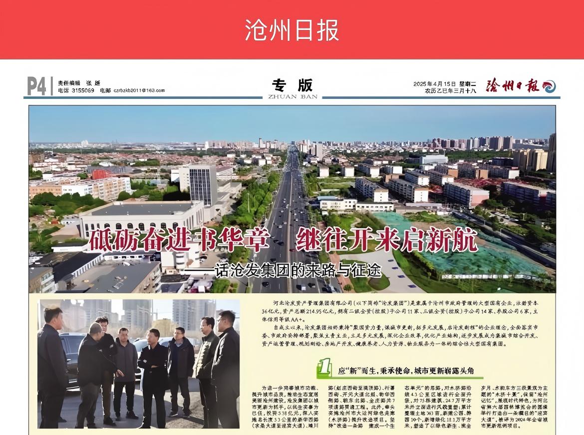 沧州日报刊发专栏文章:《砥砺奋进书华章 继往开来启新航——话沧发集团的来路与征途》