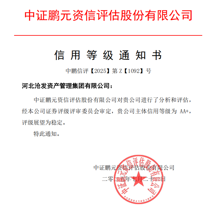 河北沧发资产管理集团有限公司是隶属于沧州市政府管理的国有全资企业,注册资本36亿元,资产总额222.1亿元,拥有二级全资(控股)子公司12家,三级全资(控股)子公司13家,参股公司4家,主体信用等级AA+。