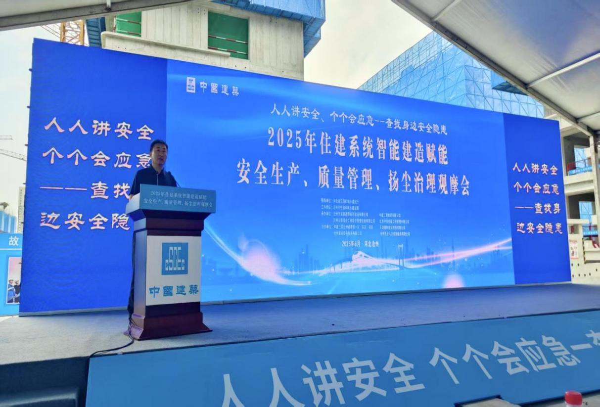 由省住建厅指导,市住建局主办,沧发集团、中建三局集团等单位承办的“2025年住建系统智能建造赋能安全生产、质量管理、扬尘治理观摩会”于6月15日在沧发集团承建的我市重点城市更新项目“通泰园小区(东区)”施工现场举行。