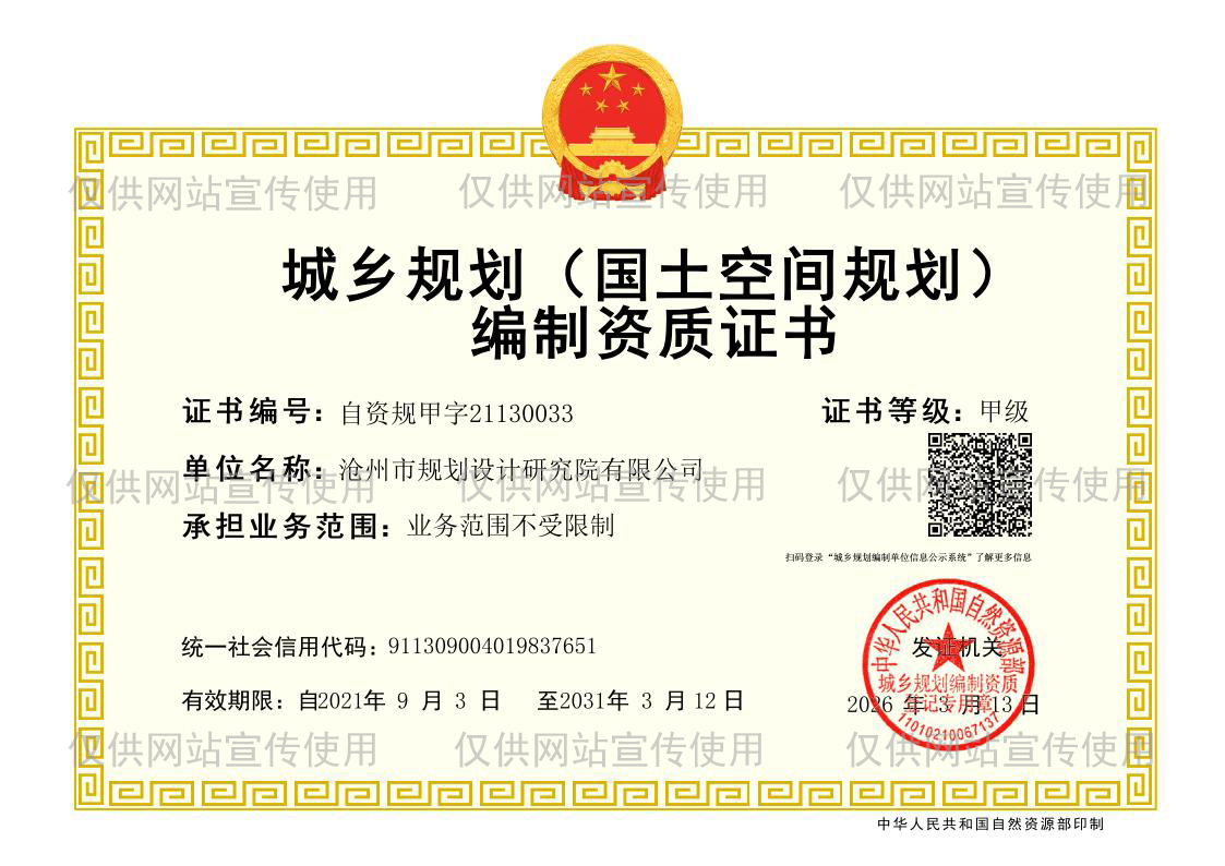近期,沧发集团下属二级全资子公司沧州市规划设计研究院有限公司(以下简称“规划院”)顺利通过自然资源部审核,正式完成城乡规划(国土空间规划)编制甲级资质更新。资质有效期的成功延续,既是国家行业主管部门对规划院专业实力的持续认可,也是规划院深耕规划领域、坚守品质初心的有力彰显,为推动集团高质量发展构筑坚实基础。